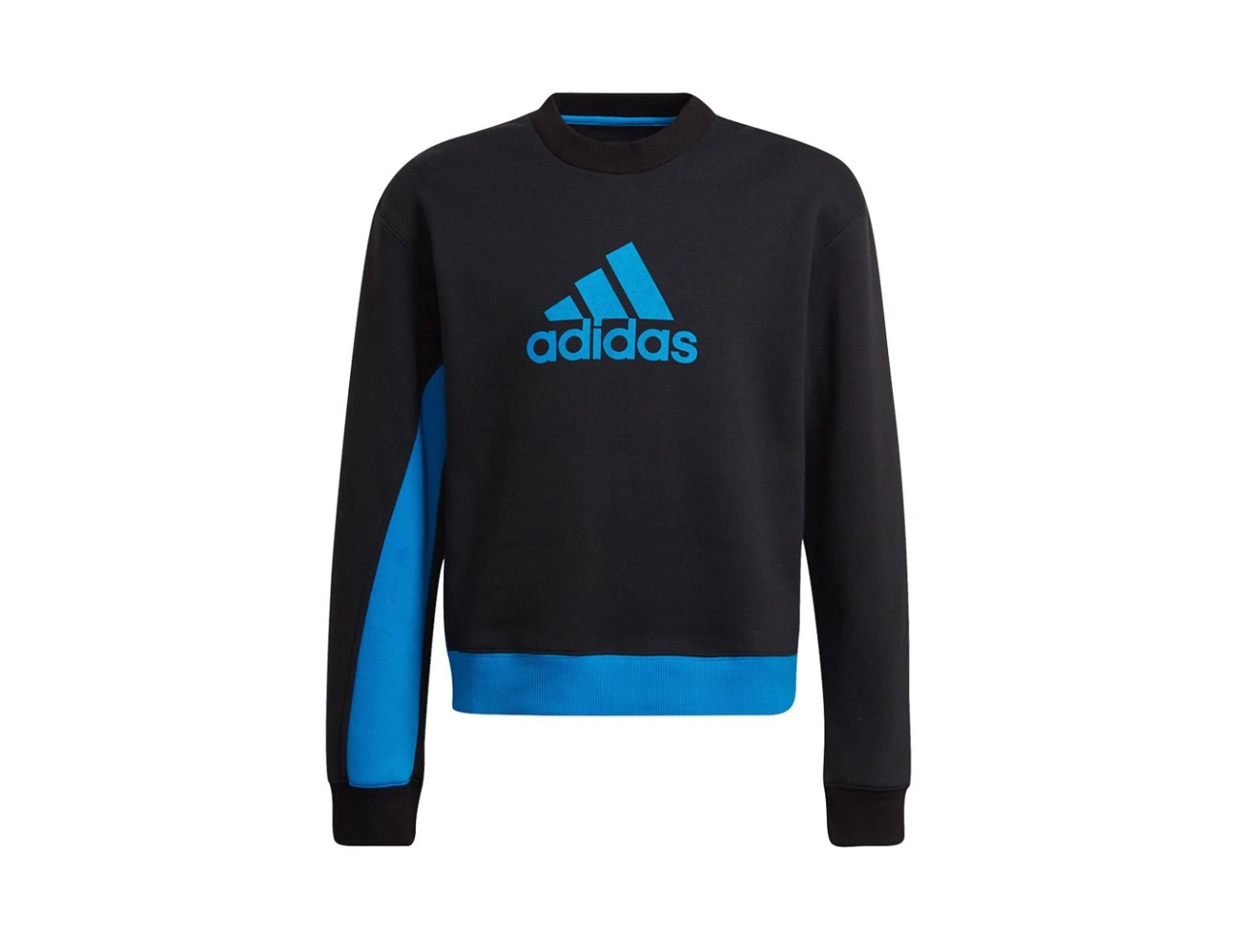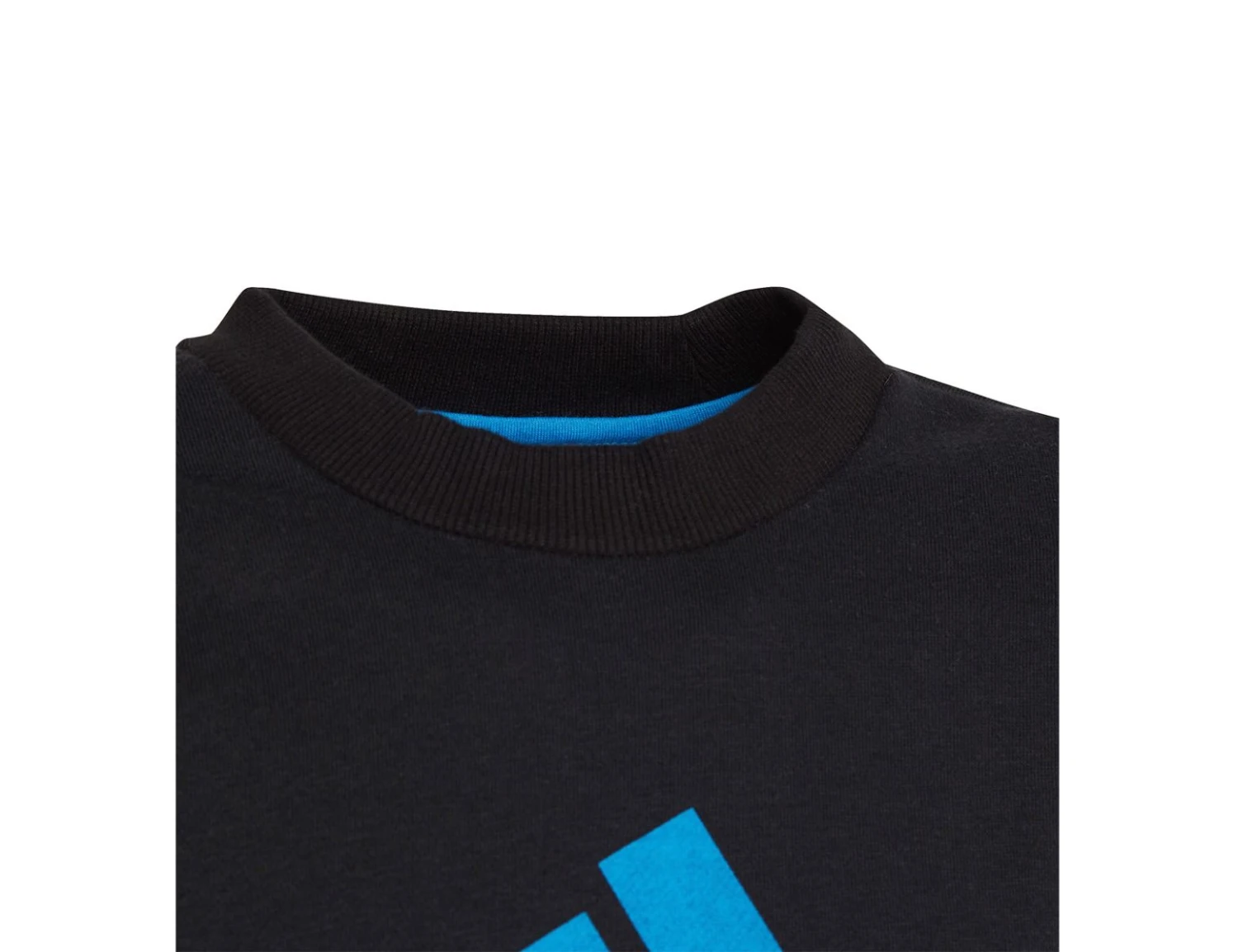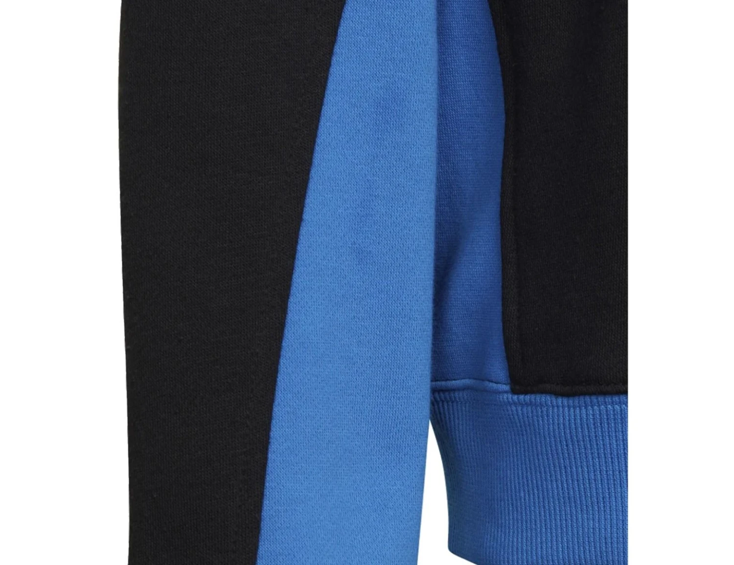 This adidas Bagde of Sports Cotton tracksuit for kids is made with recycled material and is very comfortable to wear. The combination of a sweater and jogging pants is made of fleece and cotton and has a sporty look due to the blue inserts. The sweatshirt has a ribbed neck, hem and cuffs, the pants have an elastic waistband with drawstring. In addition, the pants have two side pockets.