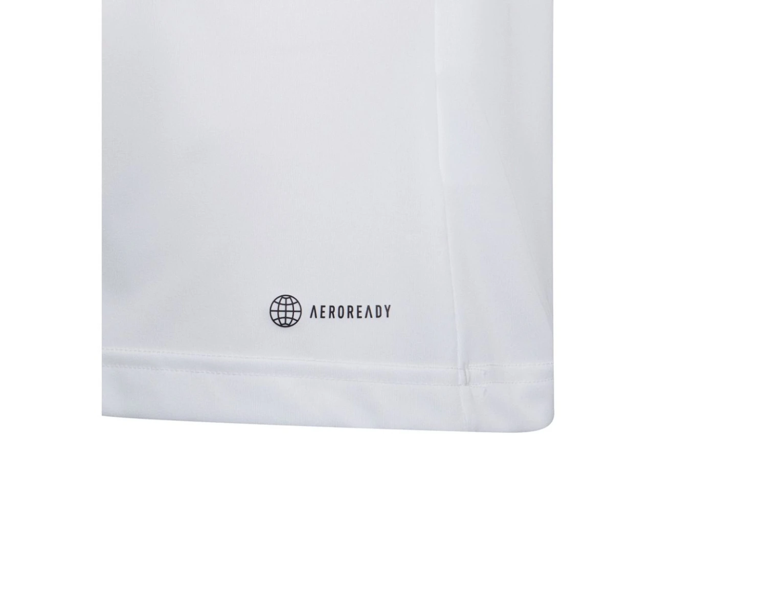 Das weiße adidas Entrada 22 Fußballtrikot für Kinder hat ein klassisches Design und das adidas Logo auf der Brust. Das Trikot ist aus feuchtigkeitsregulierendem AEROREADY Material, welches den Körper trocken hält und hat einen V-Ausschnitt. Aus recyceltem Material.