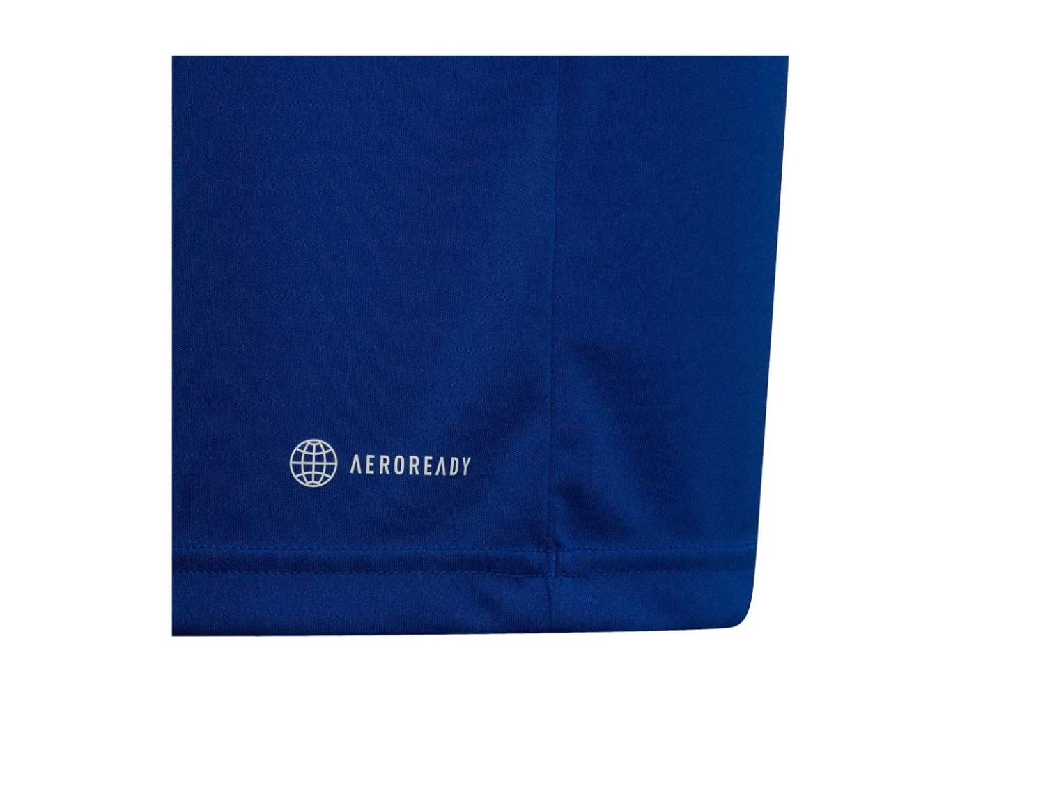 This adidas Entrada 22 football polo for kids, in the color Royal Blue, has a timeless look and is comfortable to wear due to the moisture-absorbing AEROREADY material. The collar has three buttons, the adidas Badge of Sports logo is embroidered on the front. The polo is made from 100% recycled polyester.