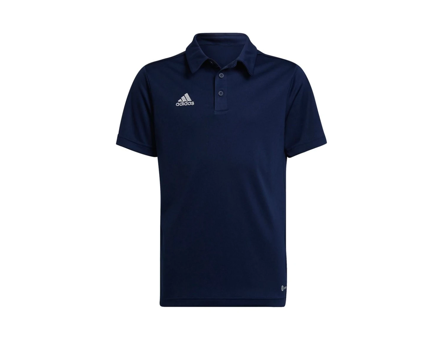 The dark blue adidas Entrada 22 football polo for children has a timeless look and is comfortable to wear due to the moisture-absorbing AEROREADY material. The collar has three buttons, the adidas Badge of Sports logo is embroidered on the front. The polo is made from 100% recycled polyester.