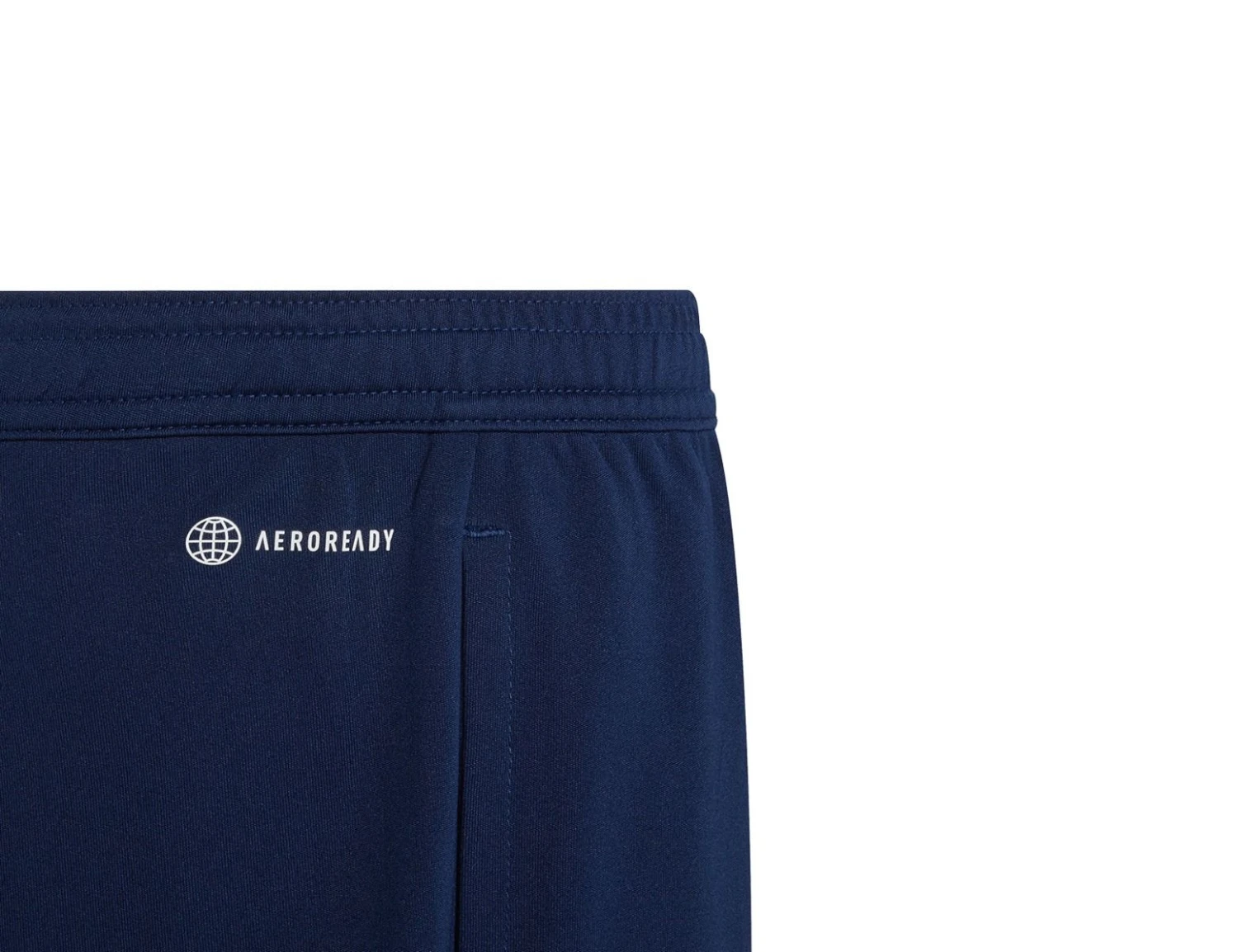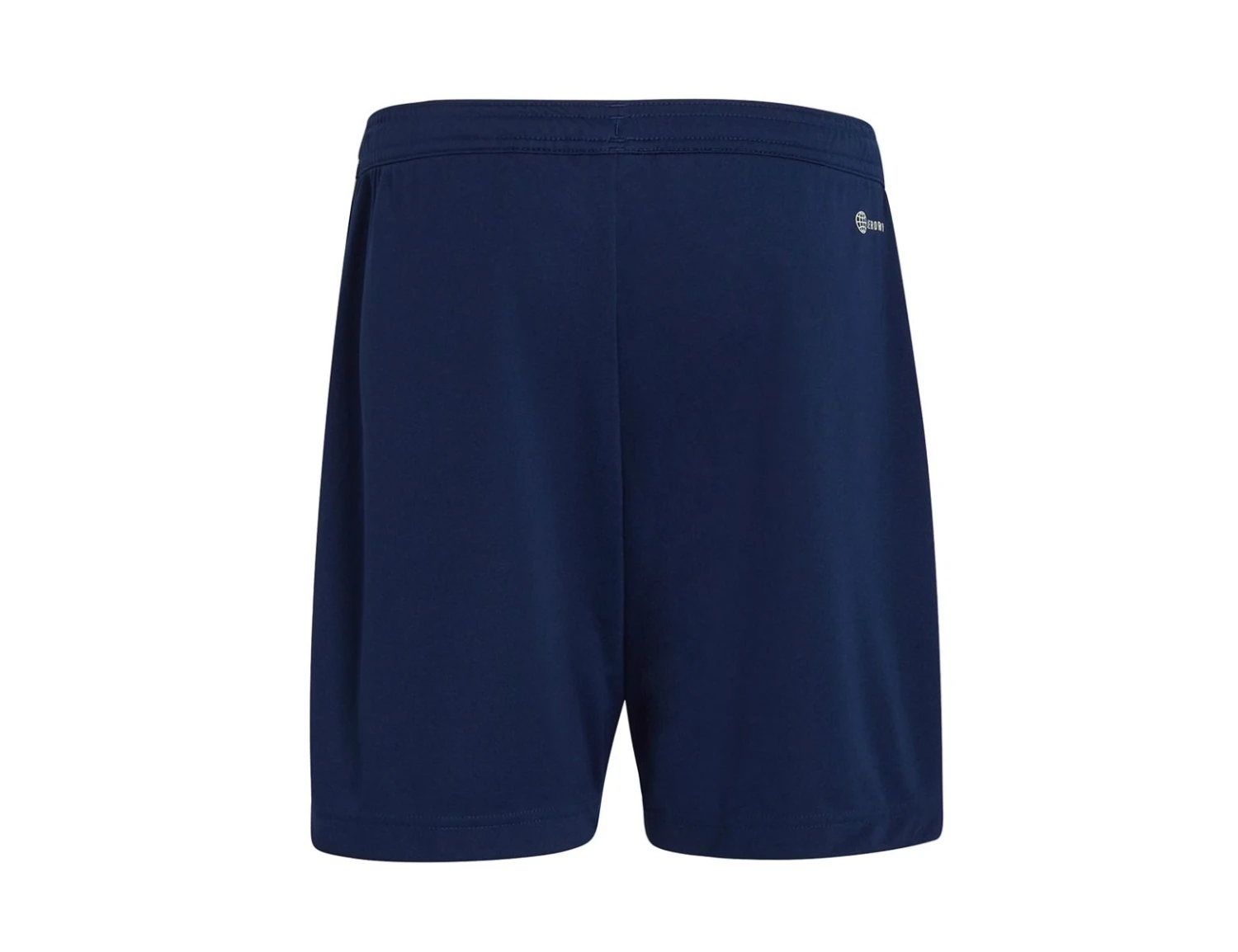 Die dunkelblauen adidas Entrada 22 Training Shorts für Kinder haben ein klassisches Design und verfügen über die AEROREADY Technologie, welche den Körper trocken halten. Elastischer Bund mit Kordelzug. Die Fußballshorts haben Seitentaschen und sind zu 100% aus recyceltem Polyester.