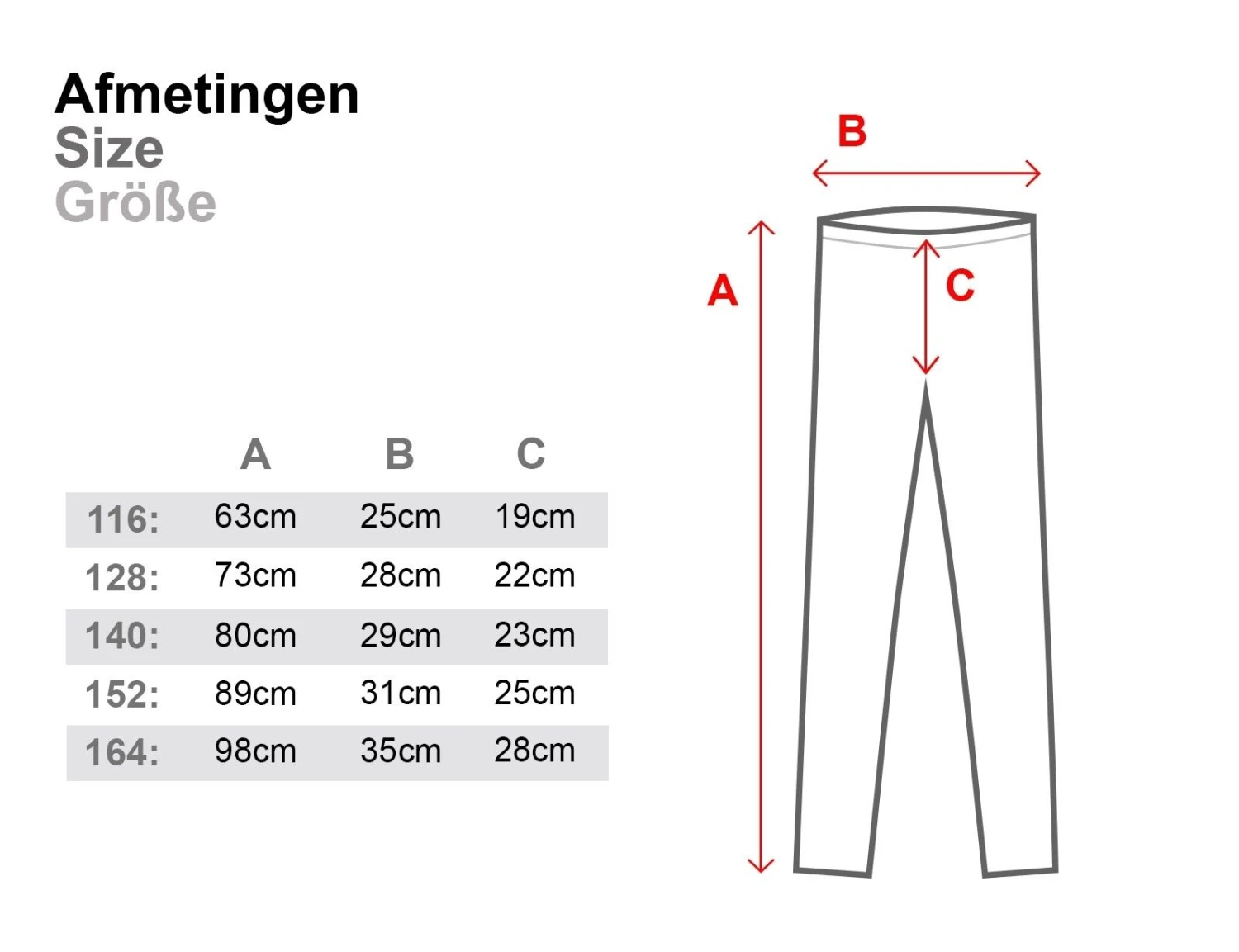 | Größe | 116, 128, 140, 152, 164 |