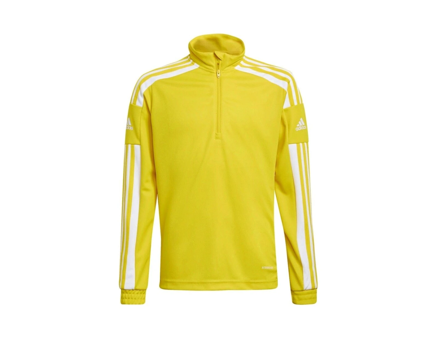 adidas Squadra 21 Trainingsshirt für Kinder aus recyceltem Polyester. Die AEROREADY Technologie hält den Körper kühl und trocken. Kurzer Reißverschluss auf der Vorderseite. Das gelbe Trainingsshirt hat weiße Logo Details und elastische Bündchen.