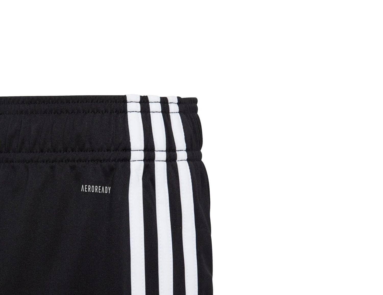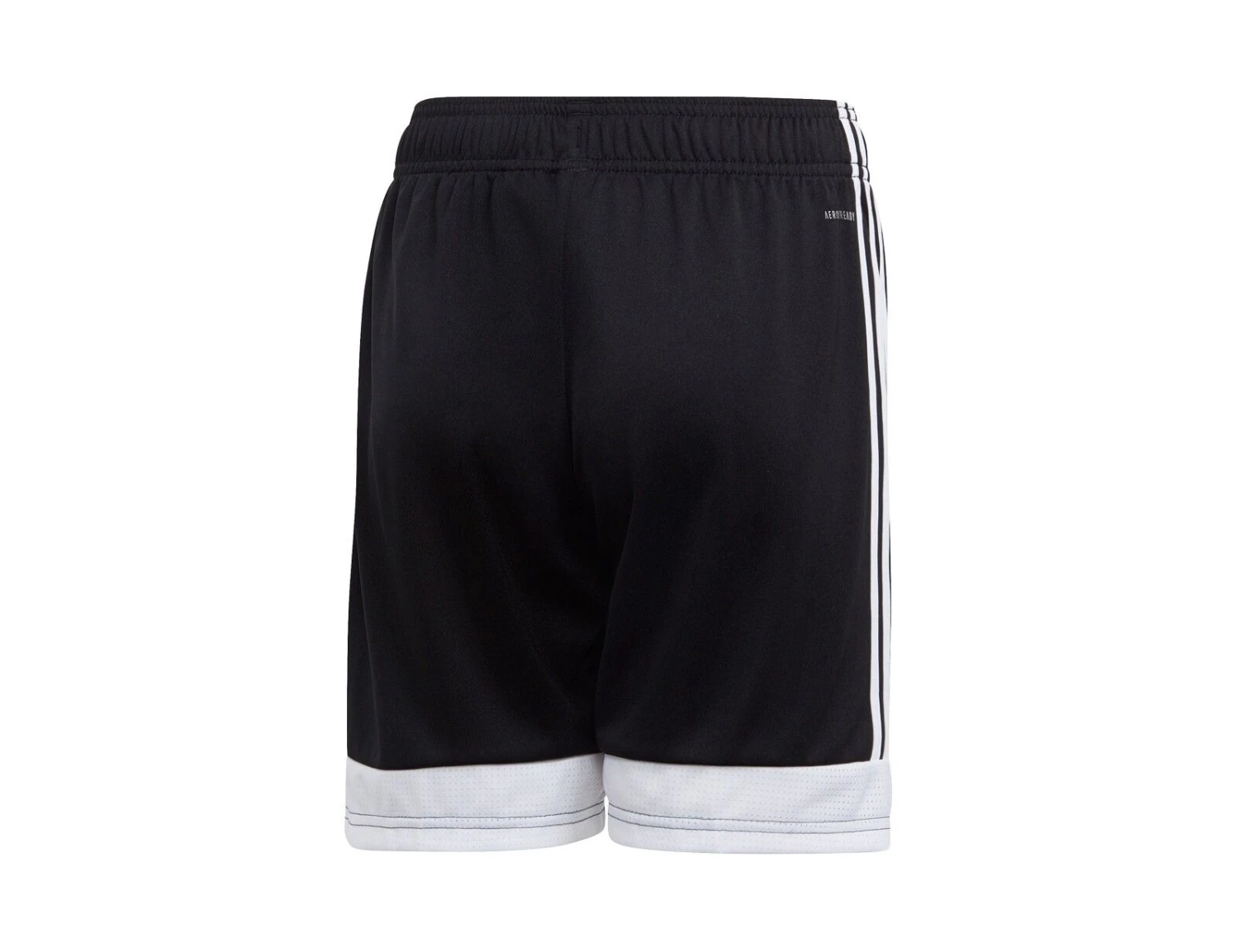 Der schwarze Tastigo 19 Shorts für Kinder verfügt über die AEROREADY® Technologie, welche feuchtigkeitsregulierend und atmungsaktiv ist. Die Fußballshorts haben einen elastischen Bund und weiße Mesh Einsätze. Die 3 adidas Streifen sind an den Seiten.