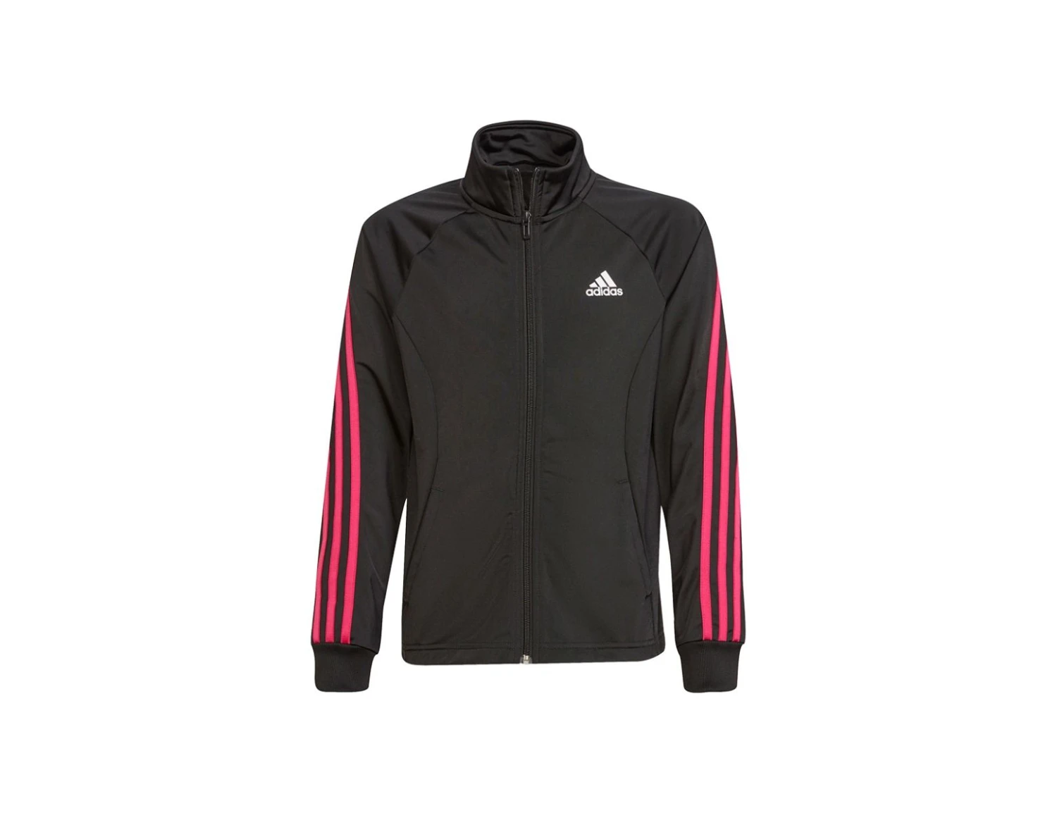 Der adidas Trainingsanzug für Kinder besteht aus einer Jacke und einer Hose und ist aus glänzendem Polyester. Geeignet für Sport und Freizeit. Pinkfarbene 3 adidas Streifen an den Seiten. Die Jacke hat einen Stehkragen und einen durchgehenden Reißverschluss, die Hose hat Seitentaschen. Dieser Artikel ist mit Primegreen hergestellt, eine Reihe hochwertiger, recycelter Materialien.