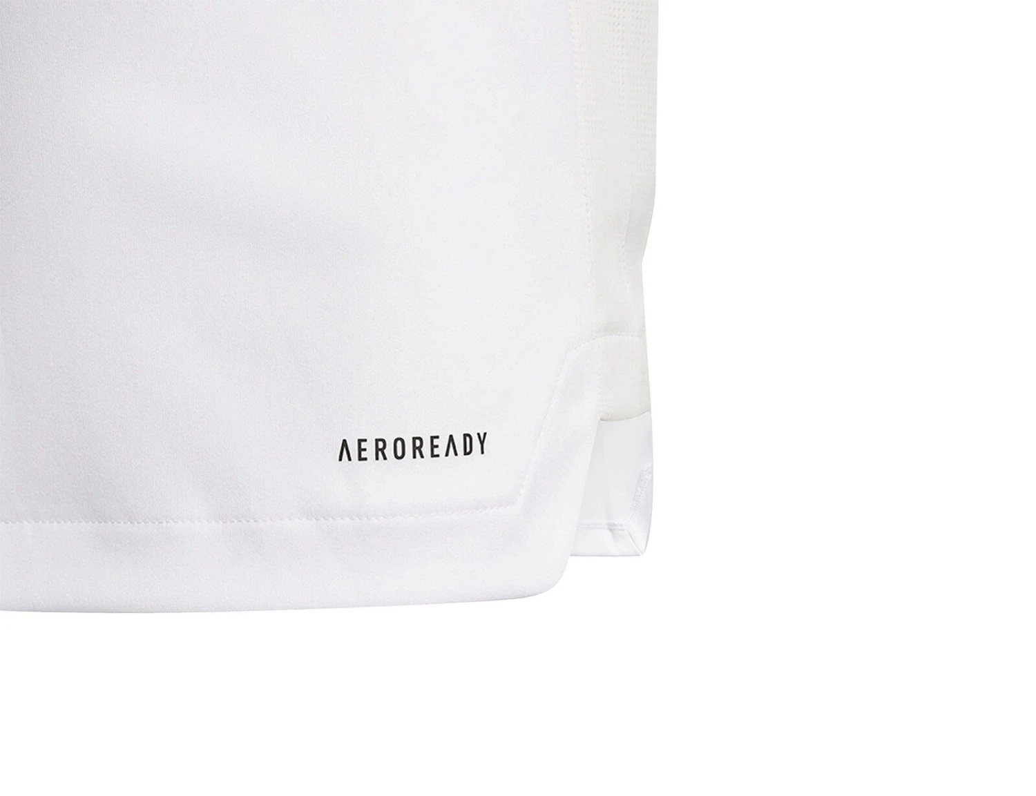 Das weiße Fußballtrikot für Kinder aus der adidas Tiro 21 Kollektion ist leicht, bietet gute Bewegungsfreiheit und ist aus feuchtigkeitsabsorbierendem AEROREADY Material. Das Trikot ist mit Primegreen hergestellt: eine Reihe von recycelten High Performance Materialien.