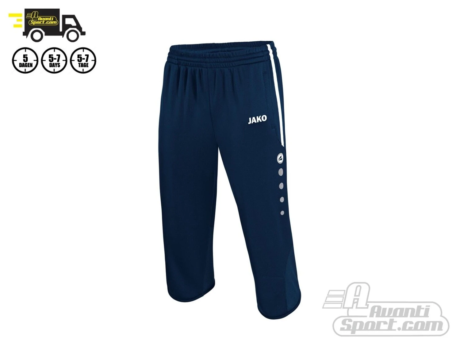Die 3/4 Trainingshose Active von Jako ist bequem und aus funktionellem Polyester. Die Trainingshosen sind atmungsaktiv, strapazierfähig und schnell trocknend. Die Hosen haben Mesh Einsätze und einen elastischen Bund mit Kordelzug und zwei Seitentaschen.
